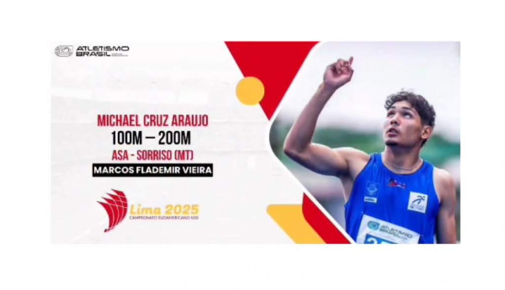 O talento sorrisense volta a brilhar nas pistas de atletismo. O jovem atleta Michael Cruz Araújo foi convocado para integrar a delegação brasileira que disputará o Campeonato Sul-Americano Sub-20 de Atletismo, que será realizado em Lima, no Peru, de 31 de outubro a 2 de novembro. O anúncio oficial foi feito ao vivo nesta sexta-feira (3), durante transmissão da TV Brasil Atletismo, canal da Confederação Brasileira de Atletismo (CBAt), pelo presidente Wlamir Motta Campos.