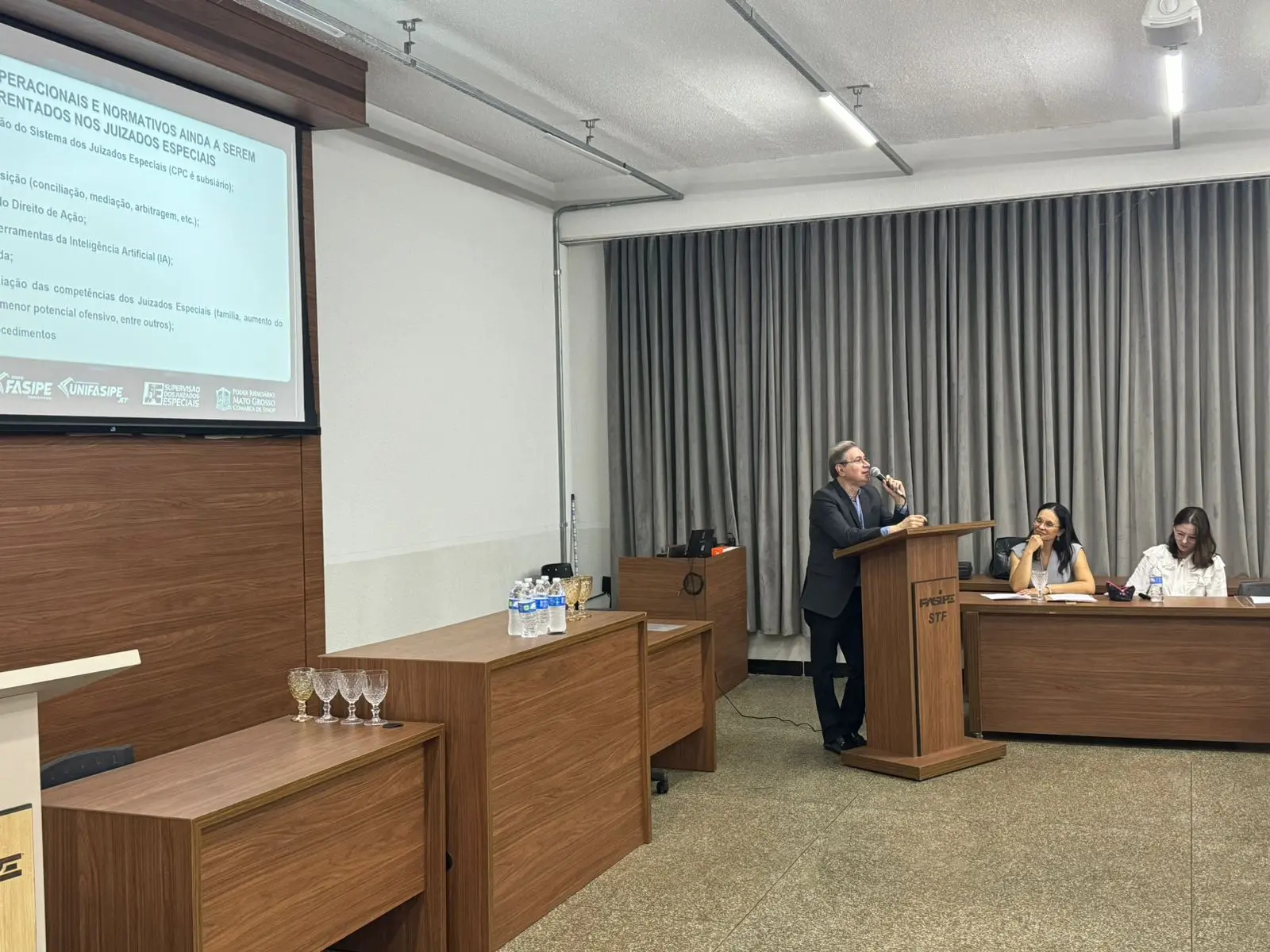 Ao longo da exposição, o magistrado também apresentou a evolução dos juizados em Mato Grosso, que atualmente atendem demandas cíveis, criminais e da Fazenda Pública, além de iniciativas específicas como o Juizado Volante Ambiental, o Juizado do Torcedor e o Serviço de Atendimento Imediato para conflitos de trânsito.