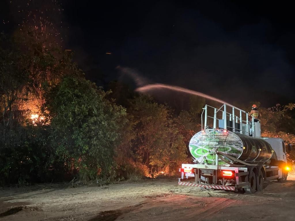Contudo, naquela mesma noite, um novo foco de incêndio foi identificado nas proximidades do local anterior. Para conter as chamas, foi construído um aceiro mecânico com o auxílio de máquinas da Secretaria Municipal de Obras, o que possibilitou a entrada dos caminhões-pipa e a aplicação da linha úmida. Além do maquinário disponibilizado, foram empregados três caminhões de combate a incêndio.