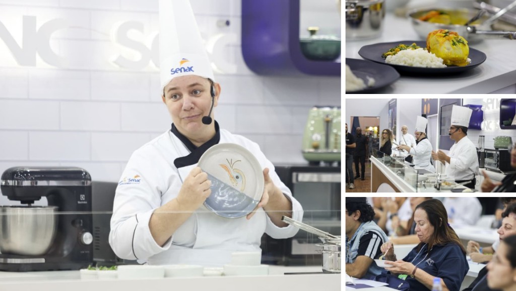 COZINHA SHOW – O Ministério do Turismo trouxe para dentro do Salão do Turismo o espaço Cozinha Show, que celebra a riqueza e a diversidade da gastronomia brasileira. Chefs especializados do SENAC preparam ao vivo receitas típicas de diferentes estados, transformando o ambiente em uma verdadeira viagem de sabores pelo país. A iniciativa valoriza a cultura culinária nacional, promove a identidade regional e reforça o papel da gastronomia como um dos grandes atrativos do turismo no Brasil.