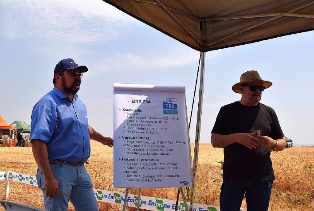 Fonte: Pesquisadores Jorge Chagas e Júlio Albrecht falaram sobre as cultivares de trigo tropical da Embrapa e o manejo para reduzir o acamamento. Foto: Breno Lobato