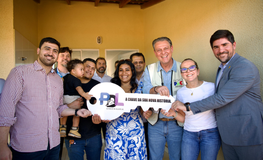 Representando o Governo Federal, o ministro da Agricultura e Pecuária, Carlos Fávaro, e o secretário nacional de Habitação do Ministério das Cidades, Augusto Rabelo, participaram da entrega de chaves para 125 famílias do programa Minha Casa, Minha Vida. A cerimônia foi realizada no bairro Novo Mundo, em Várzea Grande, na tarde desta segunda-feira (7).
