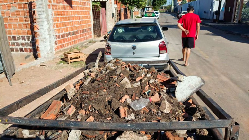Durante patrulhamento na região do Parque do Lago, em Várzea Grande, nesta terça-feira (08), agentes de fiscalização de trânsito da Secretaria de Serviços Públicos e Mobilidade Urbana flagraram o transporte irregular de restos de materiais de construção.
