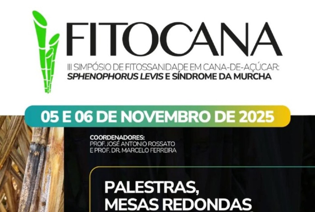 O III Fitocana, simpósio técnico-científico voltado à fitossanidade da cana-de-açúcar, será realizado nos dias 5 e 6 de novembro, em Jaboticabal (SP). Organizado pelo Centro de Pesquisa em Engenharia Fitossanidade em Cana-de-Açúcar (CEPENFITO) da FCAV/Unesp, o evento tem como objetivo aproximar a pesquisa acadêmica do setor sucroenergético, promovendo a troca de experiências entre pesquisadores, profissionais e empresas.