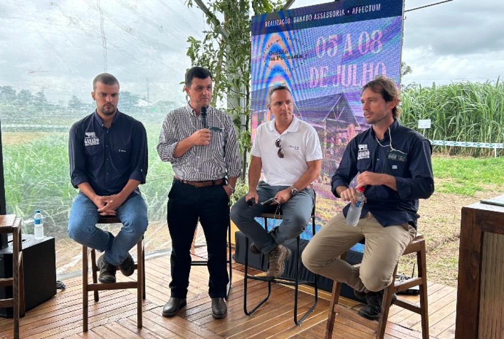 Durante o anúncio, Marcos Almeida e Leonardo Canellas, da Ganado Assessoria, ao lado de Nelson Bertoldo, sócio da Affectum Grupo, confirmaram também a realização da 5ª edição do Gestão na Pecuária, que ocorrerá de 5 a 8 de julho, em São Francisco de Paula.
