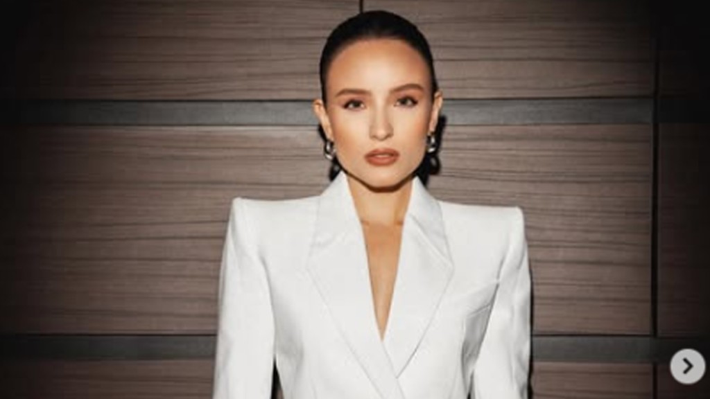 Larissa Manoela foi à festa de lançamento de Êta Mundo Melhor!, na noite desta segunda-feira (16), em São Paulo, com o marido, André Luiz Frambach, e arrasou com um belíssimo tailleur branco, que evidenciou o corpo da atriz.