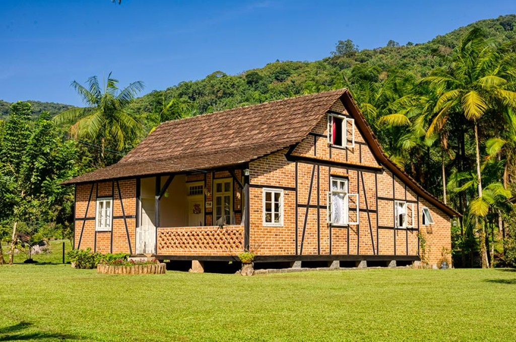 Fundada por imigrantes em meados do século 19, Pomerode tem um dos maiores conjuntos de casas em enxaimel fora da Alemanha, com mais de 50 construções históricas. Em 2021, a aldeia Testo Alto de Pomerode foi reconhecida na lista de melhores vilas turísticas da Organização Mundial do Turismo, da ONU.