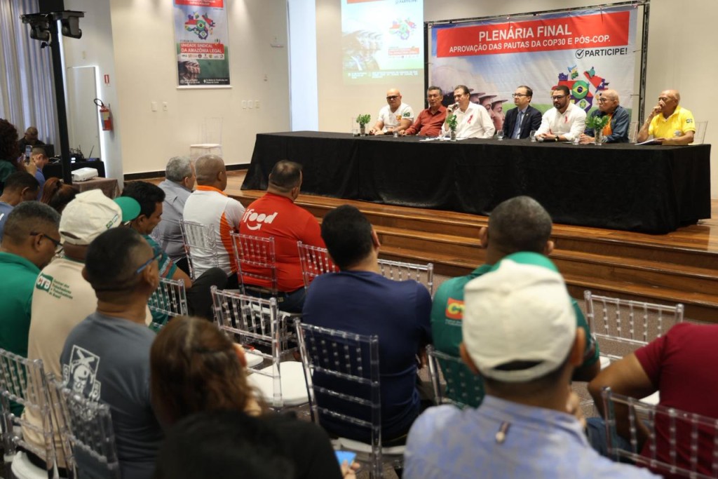 O ministro do Trabalho e Emprego, Luiz Marinho, participou nesta sexta-feira (24), em Belém (PA), da Plenária Final do Fórum de Unidade Sindical da Amazônia Legal, evento que debateu pautas voltadas à COP30, com foco em trabalho decente e justiça climática.