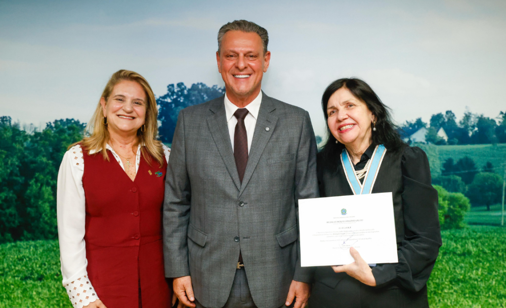 Durante a solenidade, o ministro Fávaro destacou que a homenagem simboliza um reconhecimento à própria Embrapa e à excelência da ciência pública brasileira. “A Embrapa é orgulho do Brasil e referência mundial. Em todas as agendas internacionais, todos querem parceria com a Embrapa. Esta medalha entregue à Mariangela representa também 52 anos de história da instituição. Eu disse à equipe que, no meu mandato, esta será a única entrega desta medalha porque é uma homenagem verdadeira, de grandeza equivalente à grandeza da homenageada. O Brasil lidera hoje o avanço dos bioinsumos no mundo, e isso tem o dedo da Mariangela”, afirmou Fávaro.