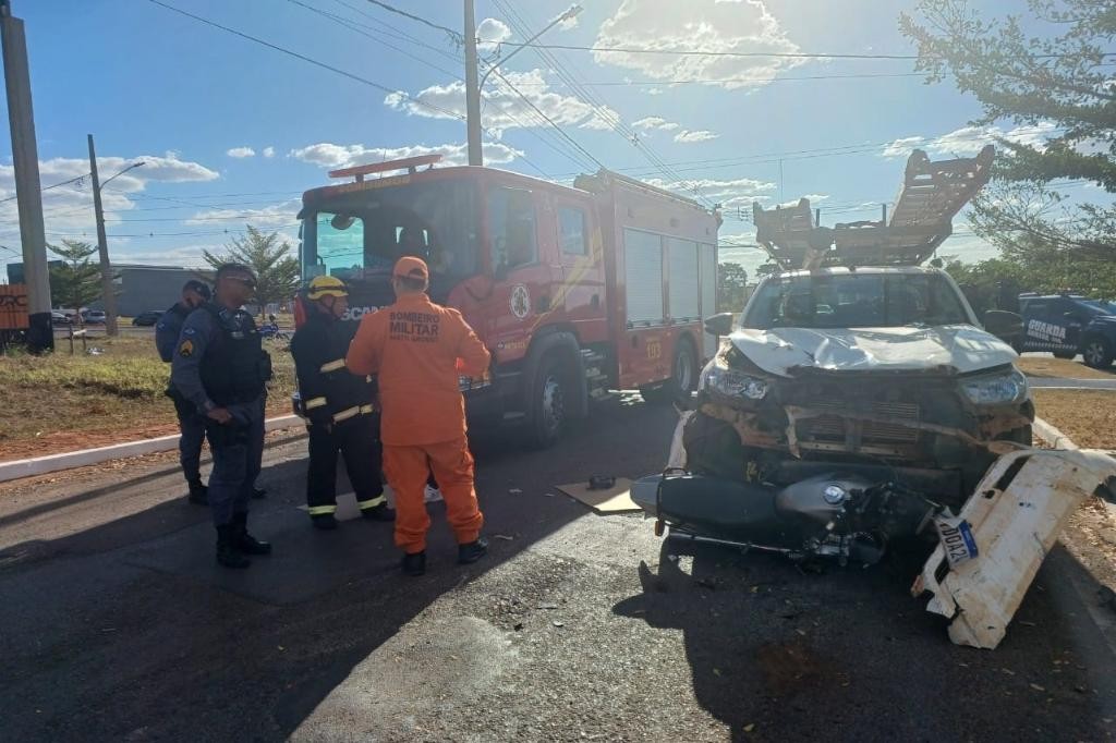 O Corpo de Bombeiros Militar de Mato Grosso (CBMMT) foi acionado na segunda-feira (14.7) para atender um acidente envolvendo uma caminhonete Hilux e uma motocicleta de trânsito, no bairro Fuji, em Lucas do Rio Verde (a 331km de Cuiabá).