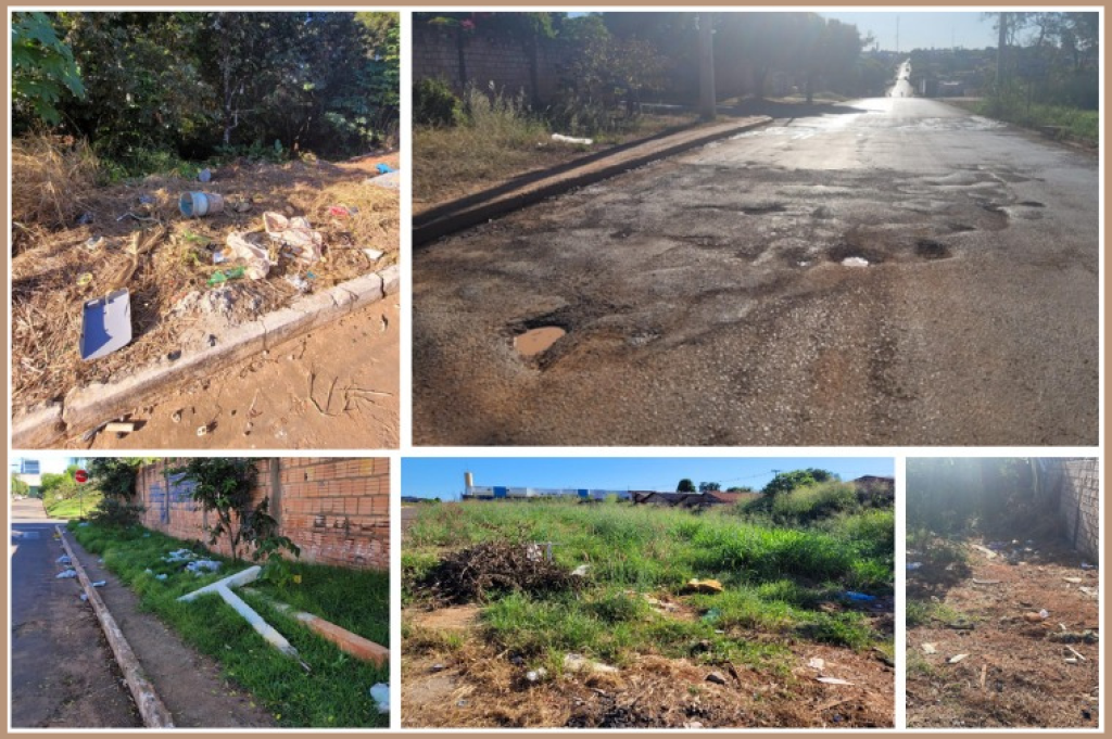 Requer também a disponibilização de pontos de ônibus cobertos no bairro para a população que utiliza o transporte coletivo urbano; realização de operação tapa-buraco nas vias públicas; construção de passeios públicos (calçadas); adoção de providências para viabilizar a oferta do serviço público de coleta e tratamento de esgoto, entre outras medidas.