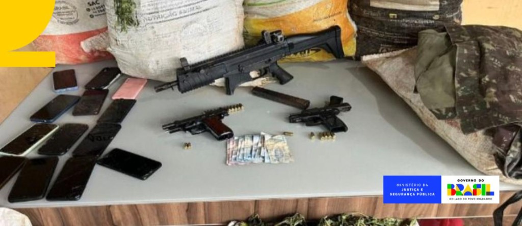 No total, além dos veículos e da droga, também foram apreendidas três armas, sendo uma submetralhadora, munição e 12 aparelhos celulares.