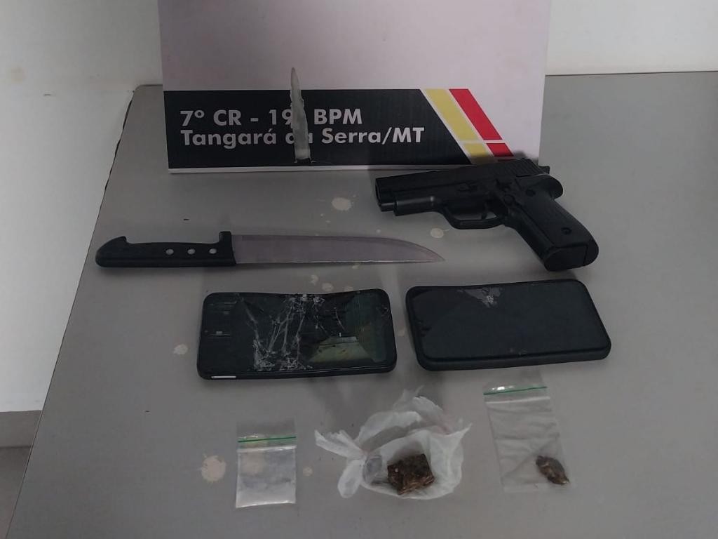 Policiais militares do 19º Batalhão prenderam dois homens faccionados, ambos de 18 anos, após interceptar uma tentativa de roubo em uma residência no início da manhã desta quarta-feira (29.10), em Tangará da Serra. Com a dupla, foram apreendidos um simulacro de arma de fogo e uma faca, usados para agredir as vítimas.