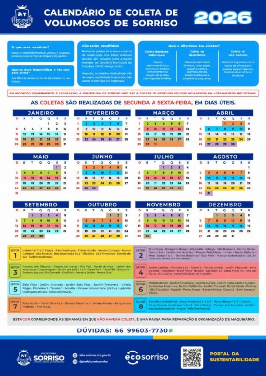Tem dúvidas sobre as coletas? Acione o Eco Sorriso pelo 66 99603-7730. Outra opção é falar com a Sintra pelo 66 99690-1823.