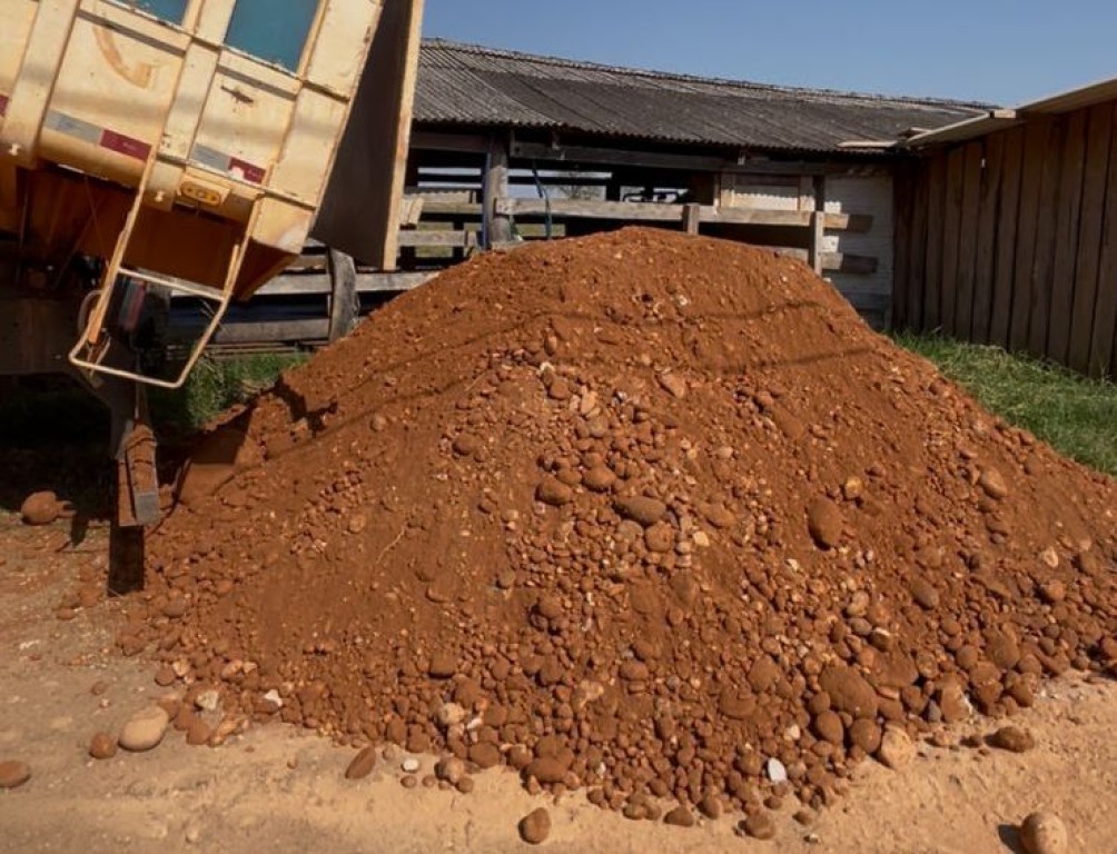 Entre as principais ações, destaca-se a área da bacia leiteira, onde foram transportadas cerca de 12.500 toneladas de cascalho, atendendo 62 produtores ao longo de dez meses. O material foi utilizado na melhoria de áreas de manejo e ordenha, facilitando o deslocamento dos animais e o escoamento da produção.