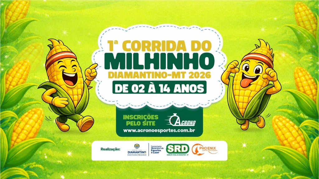 A Prefeitura de Diamantino, por meio da Secretaria Municipal de Esportes e Lazer, em parceria com o Sindicato Rural de Diamantino e o Phoenix Centro Educacional, realiza no dia 20 de junho a 1ª Corrida do Milhinho. O evento é voltado para crianças de 02 a 14 anos e tem como objetivo incentivar a prática de atividades físicas desde a infância, além de promover a integração entre as famílias.