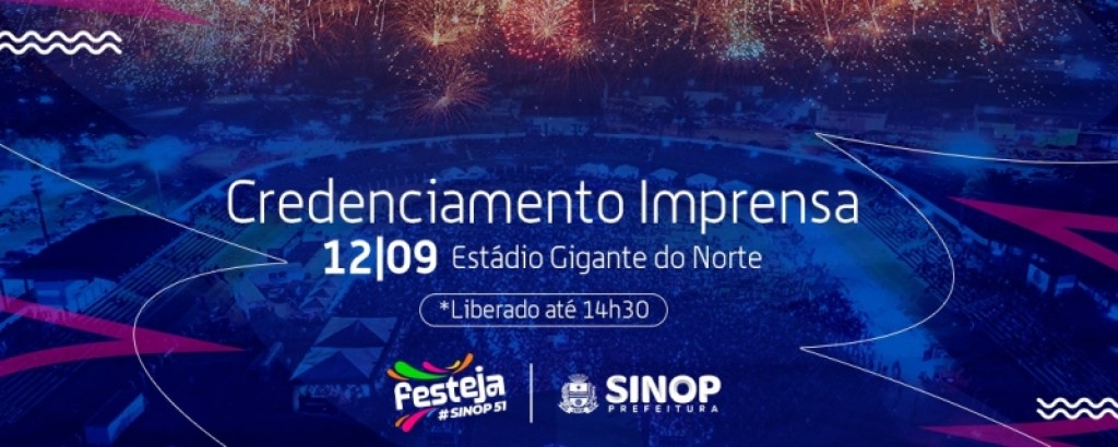 O credenciamento da imprensa será feito exclusivamente pela plataforma Event3, com preenchimento exclusivo para cada dia de evento. O link será disponibilizado sempre às 8h nos canais oficiais da Prefeitura de Sinop e da Agência Sinop de Notícias. As inscrições se encerram às 14h30 do mesmo dia e devem respeitar a capacidade operacional de atendimento. O link para credenciamento do show do cantor Leo Santana está disponível AQUI [https://www.even3.com.br/cobertura-festeja-1209-627852/].