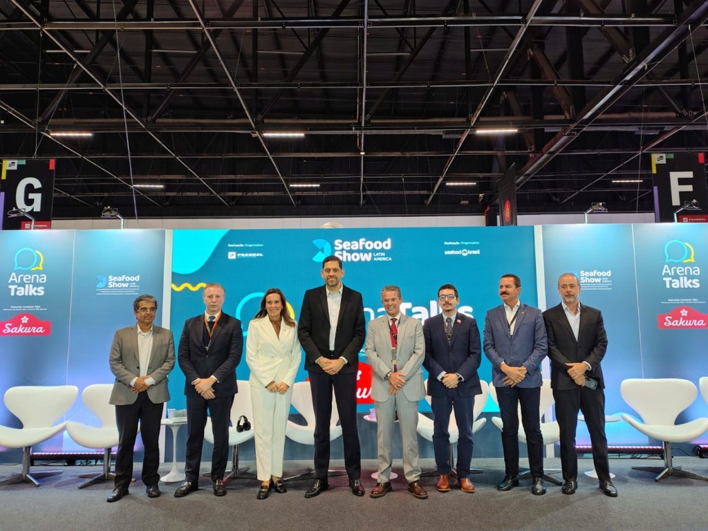 O Ministério da Pesca e Aquicultura esteve presente na abertura da 4ª Feira Internacional de Comercialização e Tecnologia do Pescado, a Seafood Show Latin America 2025, ocorrida nesta terça-feira (21/10), em São Paulo (SP). O evento é a maior feira de pescado da América Latina, reunindo empresas, restaurantes, indústrias e outros envolvidos na cadeia produtiva dos setores pesqueiro e aquícola.