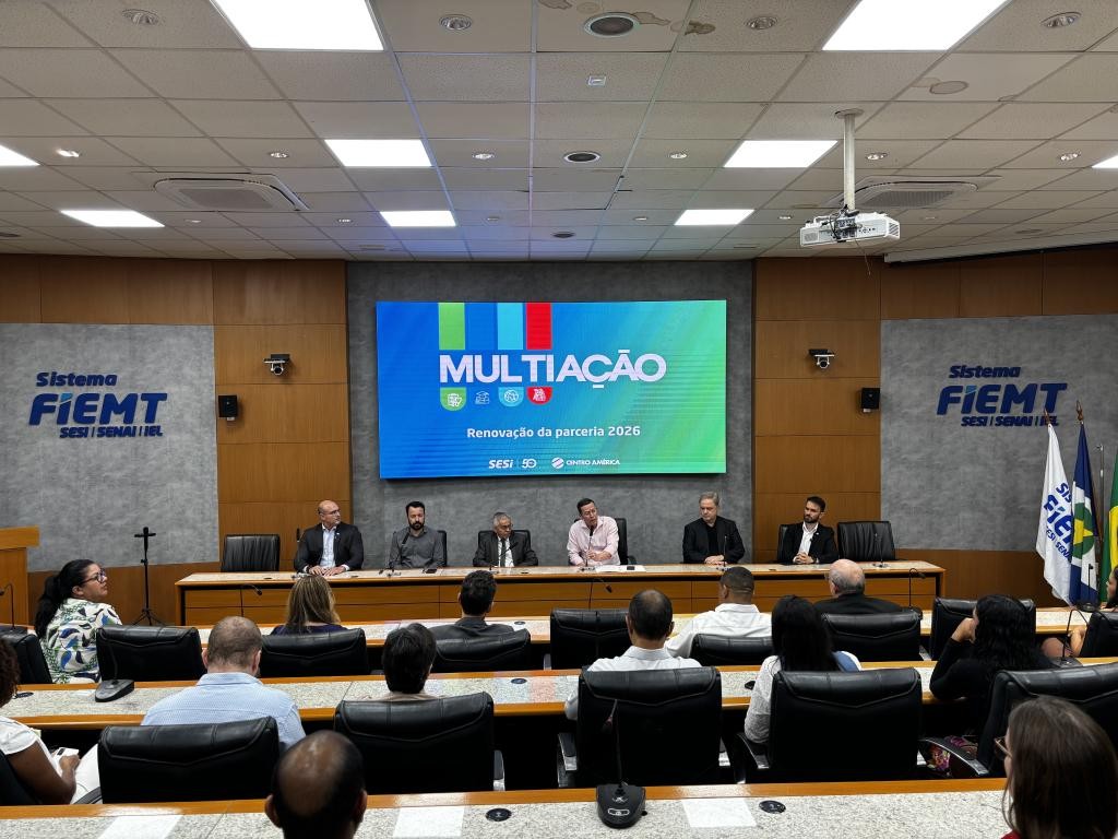 A Secretaria de Estado de Fazenda de Mato Grosso (Sefaz-MT) assinou, nesta quinta-feira (26.2), o termo de adesão ao projeto Multiação, iniciativa que reúne instituições públicas e privadas para ofertar serviços gratuitos à população em diferentes municípios do Estado. A formalização ocorreu durante o lançamento do cronograma de 2026, realizado no auditório da Federação das Indústrias do Estado de Mato Grosso (Fiemt).