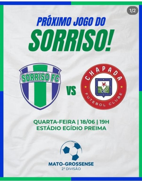 O Sorriso Futebol Clube fará sua estreia diante da torcida nesta quarta-feira (18), às 19h, no Estádio Egídio José Preima, em Sorriso. O adversário será o Chapada Futebol Clube, em partida válida pela segunda rodada da 2ª Divisão do Campeonato Mato-grossense.