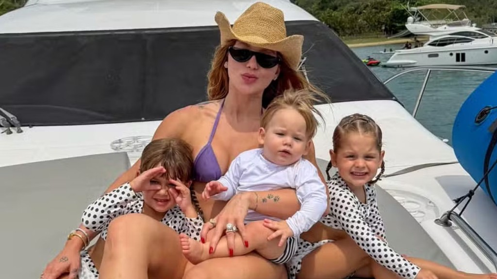 Apenas nesta segunda-feira (13), ela compartilhou com os seguidores fotos do passeio de barco em família, em que apareceu usando um look luxuoso uma bolsa cesta da Celine, avaliada em R$ 16 mil, e um vestido Emilio Pucci de R$ 4.700.
